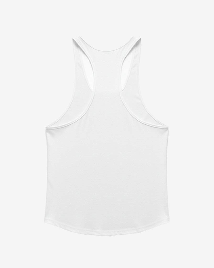 Esta no es una prenda para los que siguen. Es para los que lideran. El color blanco es la declaración de poder, pero la verdadera historia está en el fit y el gráfico. El corte «Olimpya» (el clásico stringer o racerback) está diseñado para una sola cosa: acentuar el físico que has construido con disciplina. Es el corte que define la era dorada del bodybuilding, traído al presente.