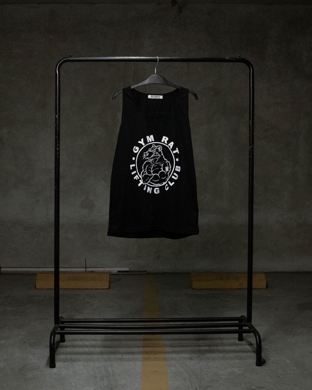 El color negro, clásico e imponente, representa poder, enfoque y constancia. Su diseño frontal con el logotipo Gym Rat Lifting Club refleja el orgullo de pertenecer a una comunidad que vive por y para el gimnasio.