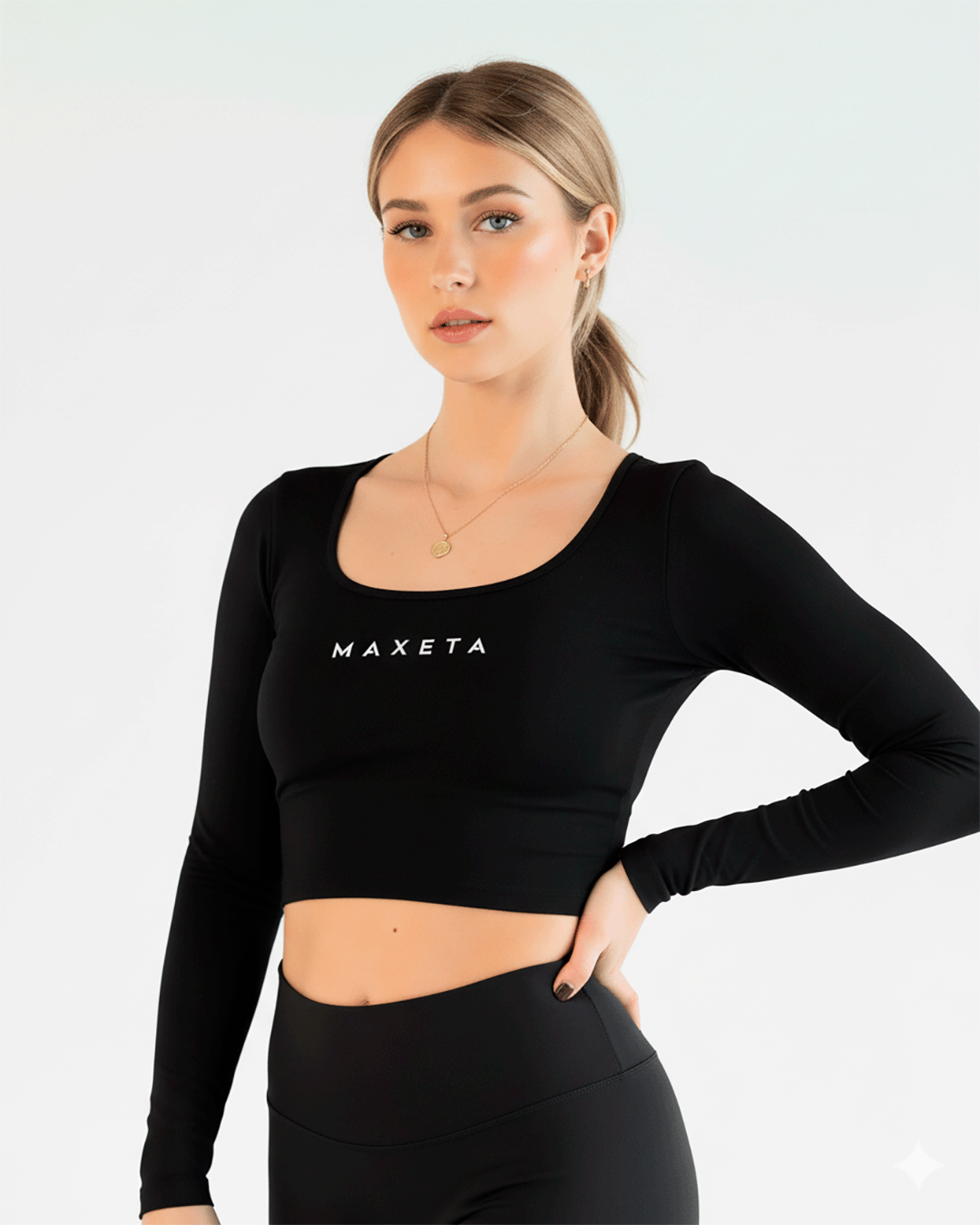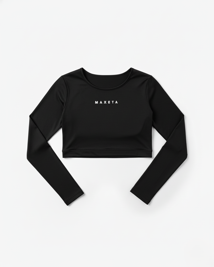 Esta no es una prenda pasiva. Es una herramienta de performance. Es la primera capa que te pones y la última que te quitas. El color «negro» es la declaración de poder, pero el fit «Compression» es la funcionalidad. Es cropped para acentuar la silueta, pero de manga larga para darte cobertura y un look de layering inigualable. Está diseñado para mapear tu musculatura, ofreciendo soporte sin restringir el movimiento. El logo de Maxeta, centrado, es el sello de una prenda diseñada para el máximo rendimiento.