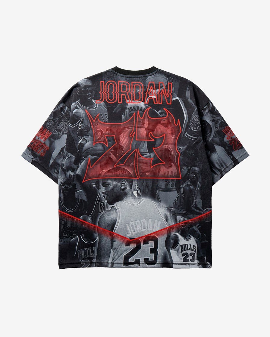 Este no es tu polo de algodón básico. Es un diseño «Sport» en silueta de jersey polo michel jordan , con un cuello en V y un corte oversized deliberado. Está hecho para caer con peso, para moverse contigo, para crear una silueta inconfundible. El diseño es un collage denso que captura la intensidad, la victoria y el vuelo de «His Airness», con el icónico número 23 y la leyenda «Jordan» integrados en un diseño que exige una segunda mirada.
